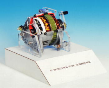 交流発電機オルタネータのカットモデルです。 プーリを回転させることができます。
