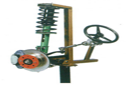 マックファーソン式サスペンション、ディスク・ブレーキ、ラック&ピニオン式ギヤボックスと油圧式ショックアブソーバのカット・モデルです。ステアリングを回すとステアリング・リンケージが連動します。カット面などはきれいに色分けされています。