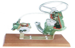 インテグラル式パワー・ステアリングのカット・モデルです。ステアリングを回すとロータリーポンプからの油圧によりステアリングが軽くなるしくみが観察できます。カット面などはきれいに色分けされています。