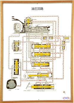 オートマチック・トランスミッションのトルクコンバータ・ロックアップ機構を制御する油圧回路が説明できます。各バルブを操作すると、開かれた油路にLEDが点灯し、各速度段の油圧回路が説明できます。
