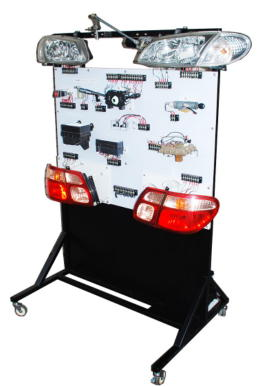 自動車の灯火回路とワイパー回路を、クリップ付きコードなどを使用して生徒が配線することにより灯火装置とワイパー回路の配線を理解させることができる実習装置です。