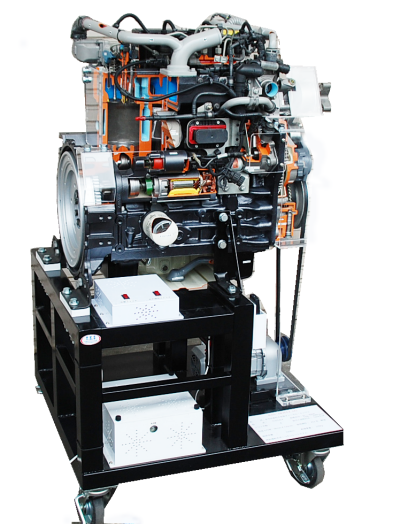 水冷式直列4気筒コモンレール・ディーゼル・エンジンのカットモデルです。シリンダ、ターボチャージャ、スタータ、オルタネータ、サプライポンプ、インジェクタ、レール、等補器類もすべてカットされています。