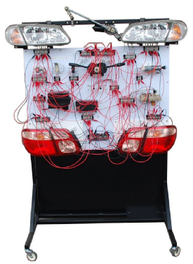 自動車の灯火回路とワイパー回路を、クリップ付きコードなどを使用して生徒が配線することにより灯火装置とワイパー回路の配線を理解させることができる実習装置です。