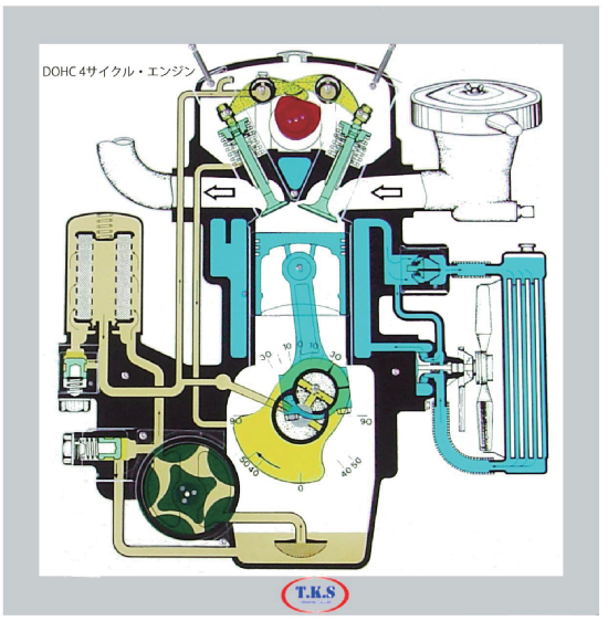 A piston, a cam, a bulb, a trochoid pump are connected when turning a crank pin and the operating principle of the cluttered engine compartment can describe.
