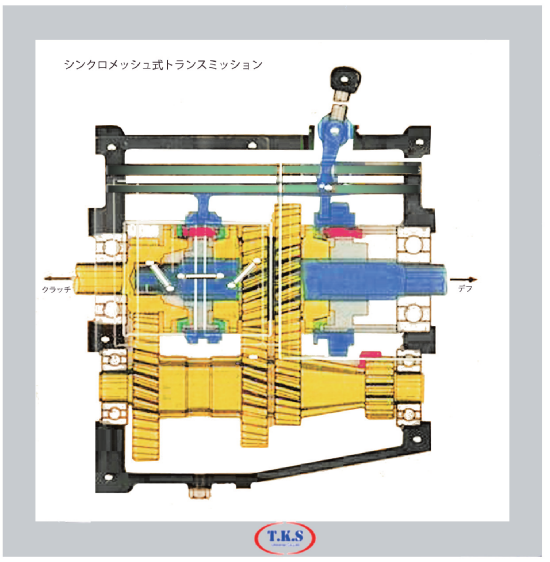 The distance-sleeve and the synchronizer key which meets with the lug are moved by the change-speed-fork and the distance-sleeve which presses a synchronizer ring on the cone Electronics Systems Division USAF Systems Command can describe the state which meets in the spline Electronics Systems Division USAF Systems Command of the gear, moving.