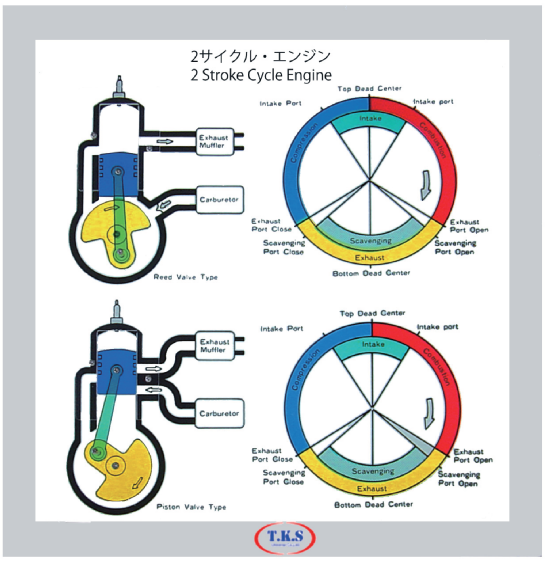 The operating principle of the two cycle and the cluttered engine compartment of the piston, the coldstart indicator, the brake-bell-crank, 2 however, that are connected ports, 3 connected ports can describe when turning the base pin of the brake-bell-crank.