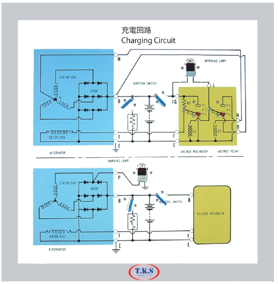 Operating an ignition switch, an angent point and so on can understand the contol of the generated-voltage at the time of the integrity which closed the ignition switch of the charging-circuit, the fast speed of the cluttered engine compartment, each revolution of the low and so on.