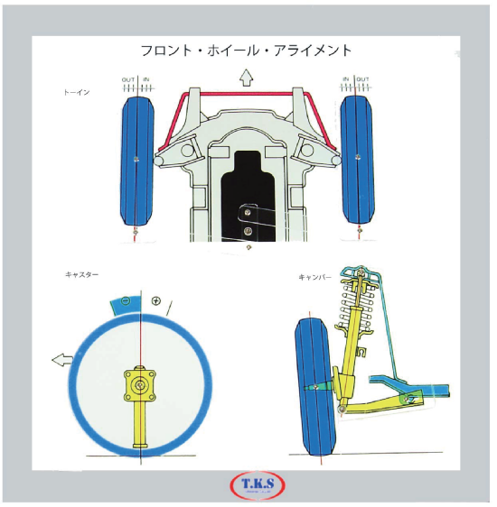 The actuation of each component can describe a description with the camber, the axle-pin rake, the toe-in length and the King base pin angle of tilt of the front axle assembly and so on easily.