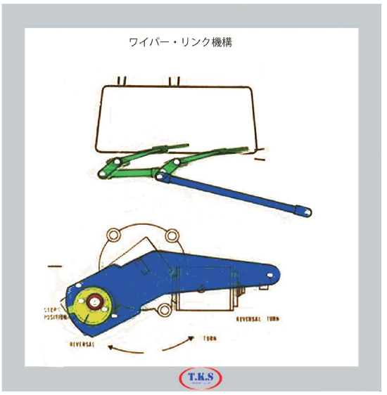 The linkage that the electromotor reverses when the wiper stops by doing a reciprocation to the place where the blade rose by several degrees of the actuation bottom-dead-center during actuation by the actuation of the eccentricity cam which was incorporated into the arm and that the blade always stops at the actuation bottom-dead-center position can describe.