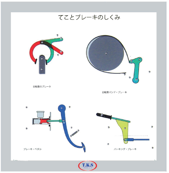 In the principle of the lever and the brake, in operating the brake gear of the bicycle and the brake gear of the auto car, the devising of a lever and a brake can be easily understood.