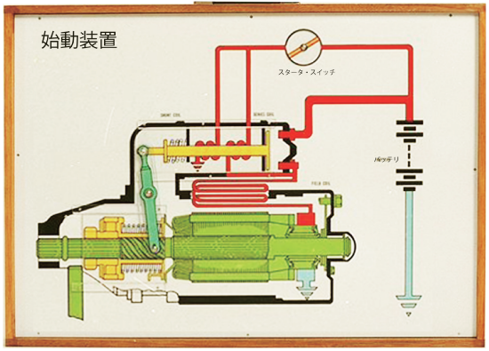The state that the current from the battery flows through the pull-in-coil, the armature-coil and the holding coil with operating a shift lever, an overrunning-clutch, a pinion, a plunger and so on in the one to explain the operating principle of the cranking-motor, that the plunger is moved to the right side by this magnetic force, and that it presses a pinion through the change-speed-lever and that it meets a ring gear can describe.