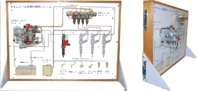 This " the common rail type diesel system cut panel " is the teaching materials that the innards and the system structure can be understood at the same time by applying a cut process, using the part of the real car in the actual pump, and the injector, the common rail brake shield, front part and so on, printing system of the common rail type fuel injection apparatus on the plastic panel.