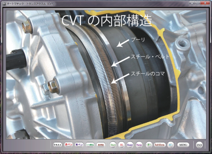 The content: The automatic Trans-axle ( the continuously variable transmission ) system, the cut total vehicle, the profile-angle, the front- go-astern change mechanism, the construction and the actuation of the steel band, the construction and the actuation of the belt pulley, the actuation, the others of the continuously variable transmission