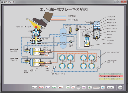 The content The actuation of the air and hydrolic brake system figure, the actuation of the dual brake bulb, secondary, the pipe-arrangement breakage on the primary side,: the actuation of the compressed air type braking assistor, the actuation of the relay valve, the actuation of the hydraulic piston, the detecting-element of the piston stroke, the actuation of the dehydrating bottle and the pipe-arrangement, the actuation of the air-compressor, the actuation of the dehydrating bottle, the actuation of the pressure regulator, the actuation of the check bulb, the actuation, the others of the safety valve