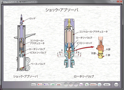 The air and spring type suspension, the front-suspension, the rear-suspension, the air spring, the leveling bulb, the actuation of the dehydrating bottle, the actuation of the pressure regulator,: the actuation of the safety valve, the actuation of the air-compressor, the actuation of the pressure regulator, the actuation of the check bulb, the actuation, the electronically controlled suspension, the passenger car, the motor coach, the component of the safety valve, the actuation, the others of the shock absorber