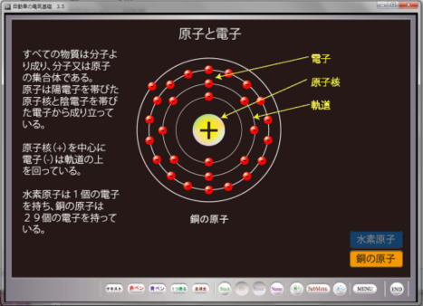 The current, the magnetic-action, the chemical-action, the exothermic-effect, the electrical potential difference, the current source and the electro motive force, the direct current and the alternating current, the electric-resistance, the electric circuit, the Ohm's law, the voltage-drop, the electric power and the electric energy, the in-line and the multiple-connection, conductor, the semi-conductor, non-conductor, the capacitor, the field and the line-of-magnetic-force, the field which is composed of coil, the left-hand-rule of Fleming, the formula, the Lenz's law, the others of the right hand of Fleming