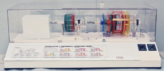 At this mock-up, it is three sets of clutches, one set of band brakes for each, two sets of planetary gear units