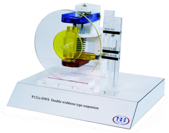 This model creates by the structure which is the same as the actual double wishbone suspension and can see the change of the suspension solidly by making the chain-pin which was prepared for the tyre which was made with transparent acrylic resin go up and down.